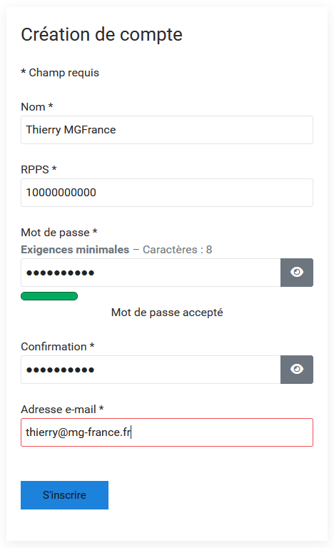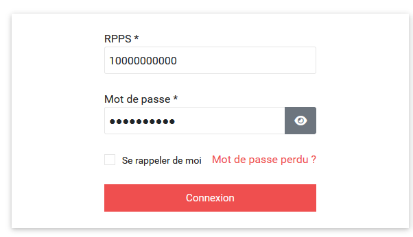 Cette fois vous renseignez votre numéro RPPS et le mot de passe que vous avez défini.