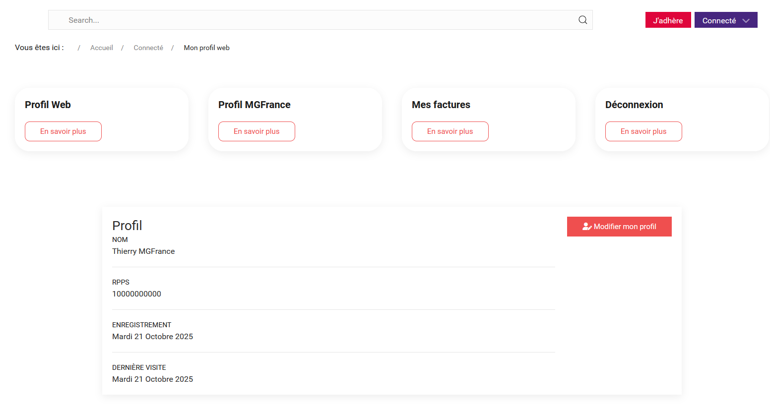 Depuis la page d'accueil du site MG France allez sur « Espace Adhérent »